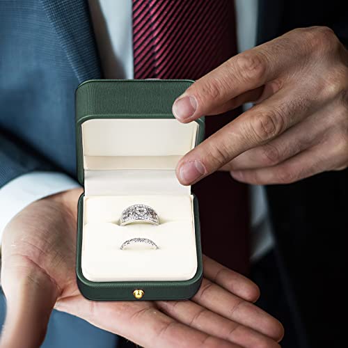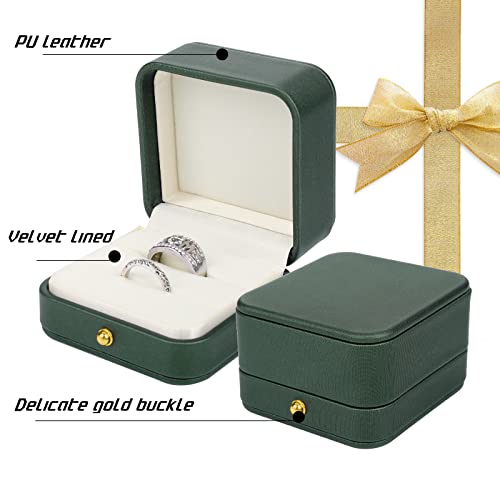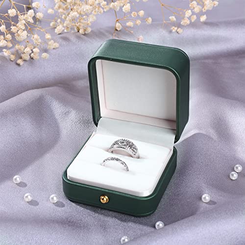 Lusofie 2 Slots Trouwring Doos Lederen Engagement Ring Box Premium Prachtige Vierkante Groene Ring Doos Voor Voorstel Bruiloft Engagement Ceremonie Sieraden Gift