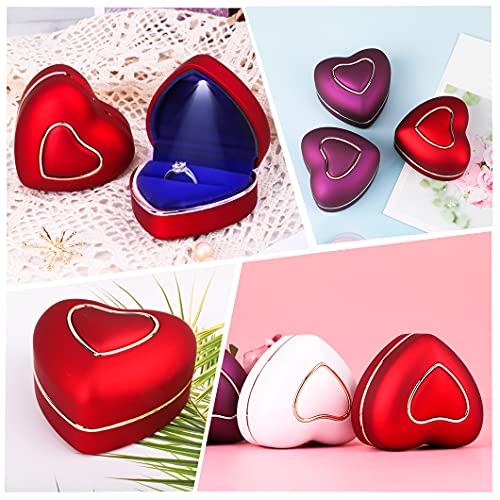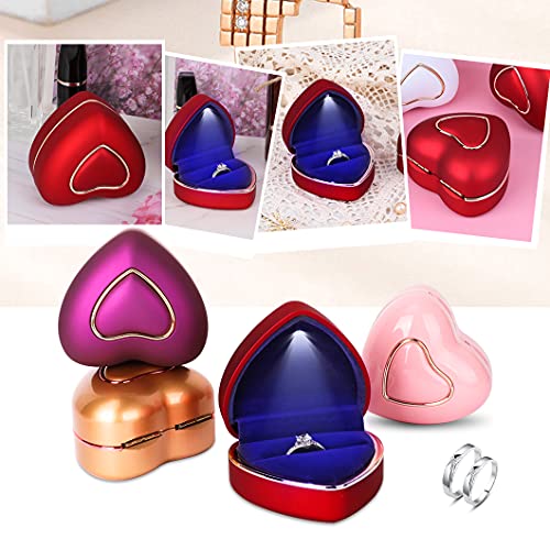 Rolin Roly Heart Shaped Ring Gift Box with LED Light Jewelry Ring Case Jewellry Display Ring Boxes For Proposal Wedding Ring Box Ceremony Engagement Proposal Anniversary (Red Heart Ring Box)