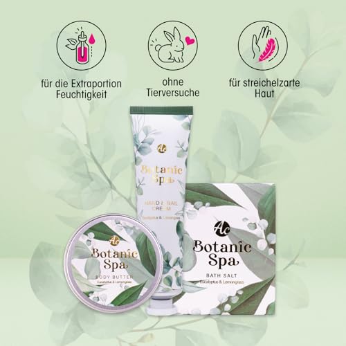 Accentra Badset voor dames, cadeauset Botanic Spa in mooie geschenkdoos, 3-delige verzorgingsset met handcrème, boter en badzout, cadeauset voor Valentijnsdag en Moederdag