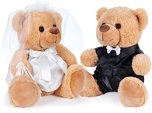BRUBAKER Teddybeer Huwelijksstel – Bruid en Bruidegom Teddy Set – Cadeau voor Huwelijk en Verloving – Huwelijkscadeau voor Bruidspaar – Knuffeldieren met Pak en Bruidsjurk – 25 cm