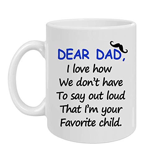 Best Birthday Gift for Dad Father Cup,Dear Dad, I’m Your Favorite Child Coffee Mug, Fathers Day Christmas Gifts for Dad, White 11 Oz
