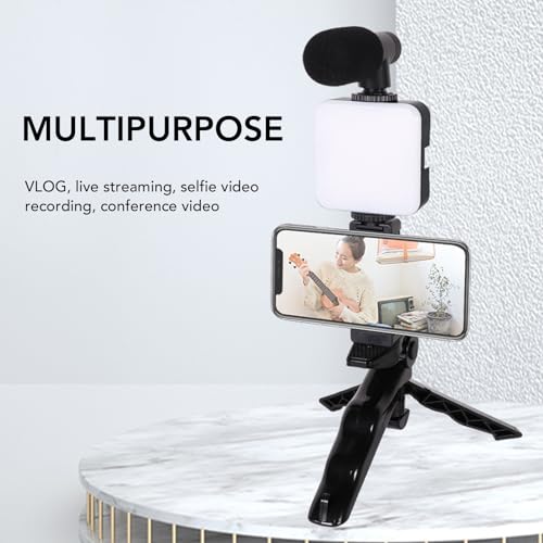 Smartphone Video Vlogging Kit, Content Creator Kit met Verstelbaar LED-invullicht, Telefoonhouder, Microfoon, Statief, voor Video-opname Vloggen, Livestream, voor Telefoon,