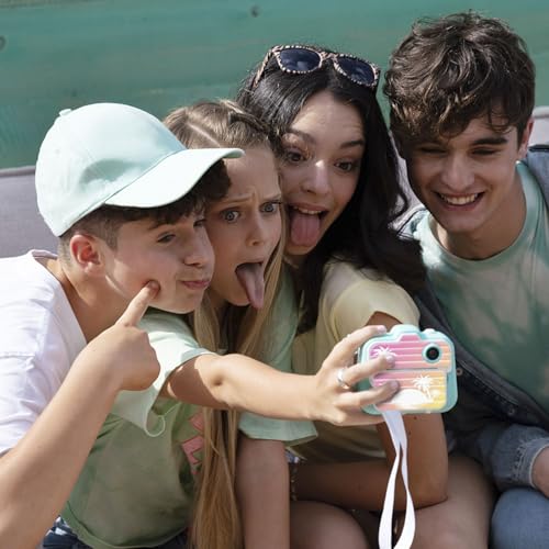 KIDS INSTANT CAMERA + GEHEUGEN: Een leuke 12 MP digitale camera voor kinderen met een ingebouwde thermische printer, zodat u uw foto’s direct kunt afdrukken zonder droogtijd! Inclusief 4GB micro-SD-kaart, dus er is veel opslagruimte om video’s en foto’s op te slaan!