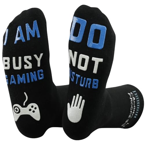 Plaats de eerste recensie voor “‘Do Not Disturb I ‘m Gaming’ sokken voor mannen vrouwen, grappig gezegde breien woord gekamd katoen enkel gamer sokken – geweldig cadeau voor gamers (Long-wit blauw)”