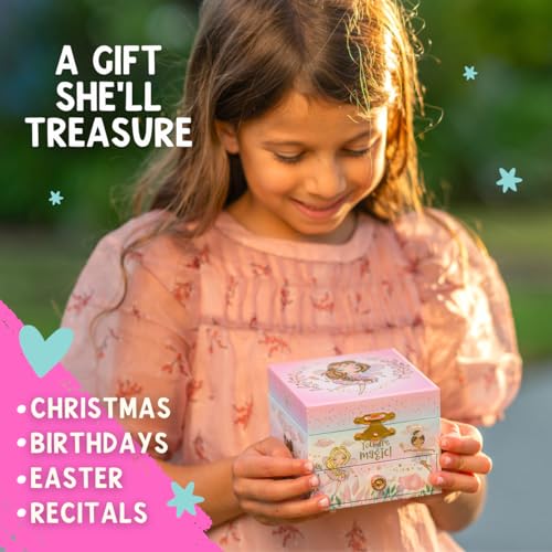 Betoverend cadeau – In een kant-en-klare cadeauverpakking zijn het perfecte fee cadeaus voor meisjes van 3, 4, 5, 6, 7, 8, 9 & 10 jaar voor verjaardagen, Kerstmis en meer. Bovendien vullen de muziekjuwelendoosjes voor meisjes het bestaande prinses speelgoed & prinses kamerdecor aan.