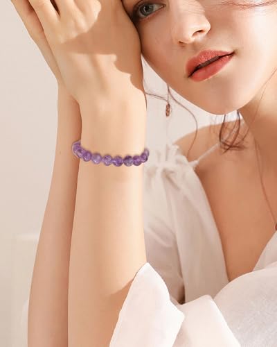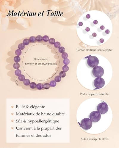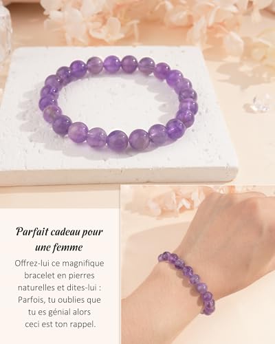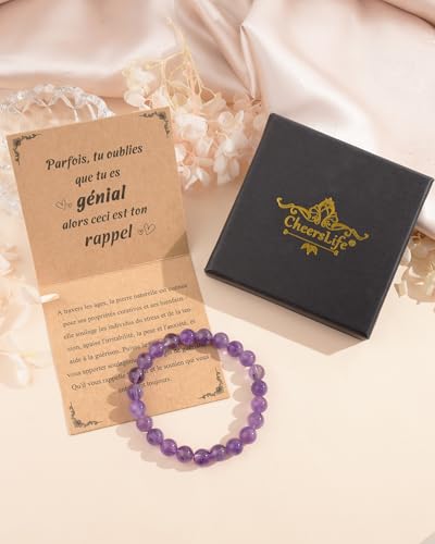CheersLife Vrouwenarmband Gift Vrouwenarmband Natuursteen Cadeau Idee Verjaardag Kerst Armbanden Originele Parel Cadeau voor Mama Dochter Zus Vriendin Tiener Paar Vrouwen Sieraden – Amethist FR