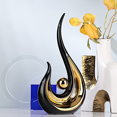 XMGZQ Zwart en Goud Moderne Abstracte Beelden Kunst, Huisdecoratie, Accenten, Koffietafel Decoratie voor Woonkamer, Eetkamertafeldecoratie, Keramische Sculpturen Krimsprooms voor