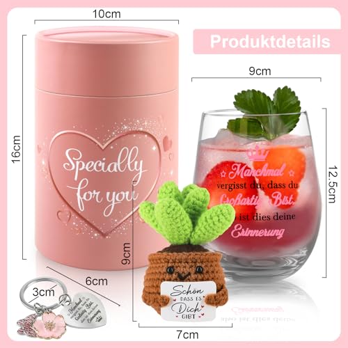 Perfect cadeau voor je vriendin: zoek je een perfect verjaardagscadeau voor je vriendin, vrouw of beste vriendin? Dan is onze wijnglazenset precies wat je zoekt. Onze verjaardagscadeauset bevat een hoogwaardig wijnglas, een gebreide pop en een sleutelhanger. Het is perfect om speciale vrouwen in je leven (zoals je vriendin, beste vriendin of moeder) een plezier te doen en hen te laten zien hoeveel ze voor je betekenen.