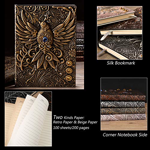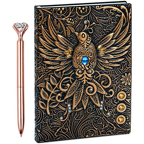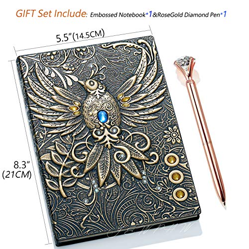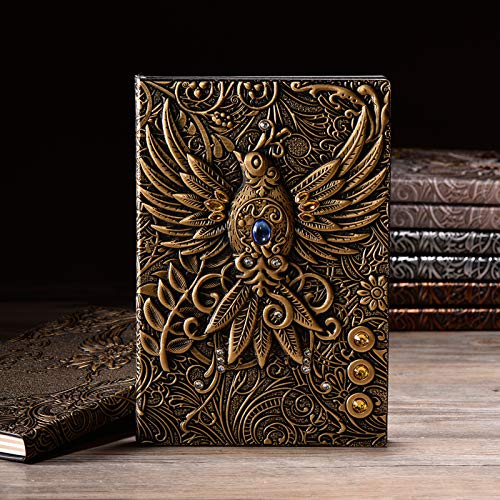 3D Embossed Vintage Leather Journal Writing Notebook with Pen Set,Antique Handmade Leather Daily Notepad Sketchbook,Travel Diary&Notebooks to Write in,Gift for Men Women (Phoenix-Bronze)