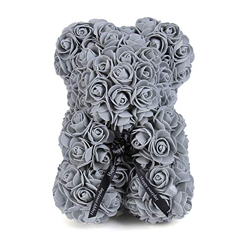 Rose Flower Bear 10 “Teddy Bear Kunstbloemen Gift voor Moederdag, Valentijnsdag, Verjaardag & Bruids Douches w/Clear Gift Box (grijs)